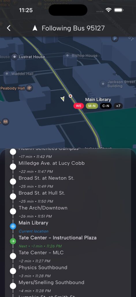 New Bus Follow Page lets you follow the entire route, watch stop-by-stop timing, and view all buses operating on that route.