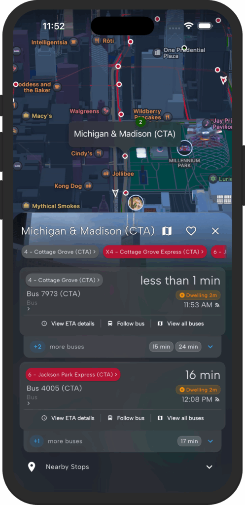Version 2 brings a completely redesigned ETA engine with better accuracy and faster updates. See buses that are dwelling and track their next stop in real time.