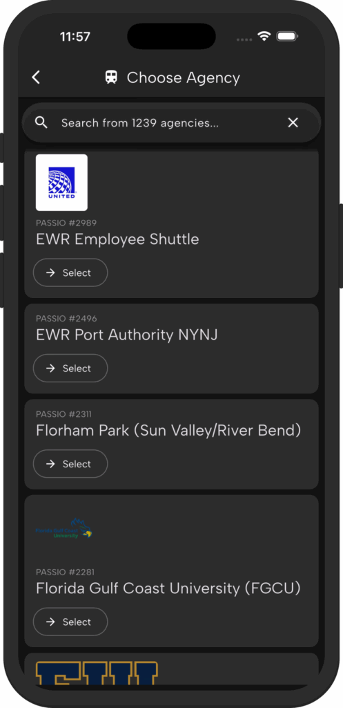 Destination integrates with over 1000 transit agencies via Passio GO™ and TransLoc™.